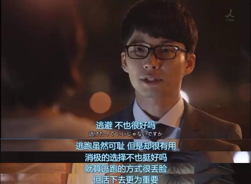 男主还在女主为自己的想法产生内疚感时,说出了本剧的核心观点“逃避虽可耻但有用”,看到这句话瞬间觉得男主气场两米八啊~
