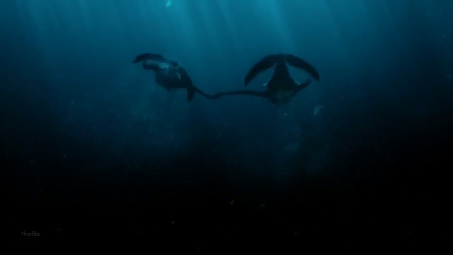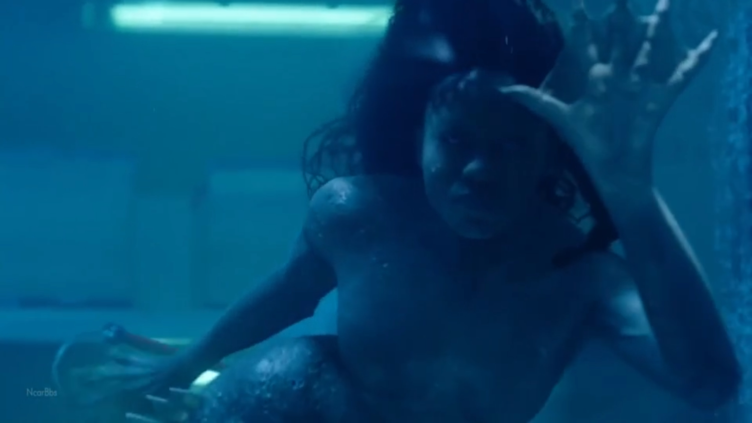 这部剧人鱼的水中形态还是偏妖一些的,也不算太吓人,但透着一股生人勿近的气息。