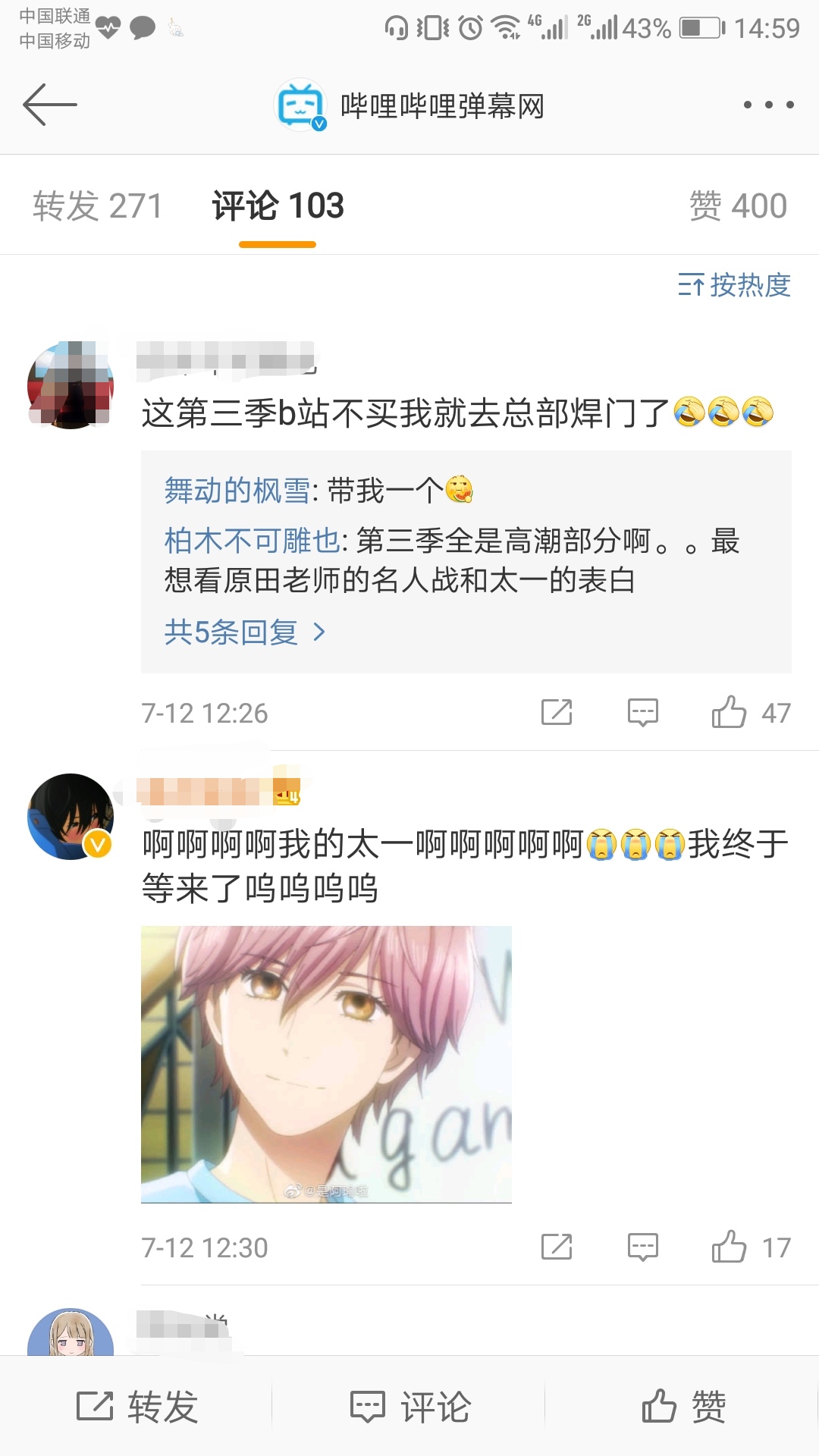 对《花牌情缘》3的播出,网友们都表示,有生之年系列啊~~~!超期待太一,还说b站不买版权就把总部的门给焊了,哈哈,优秀!