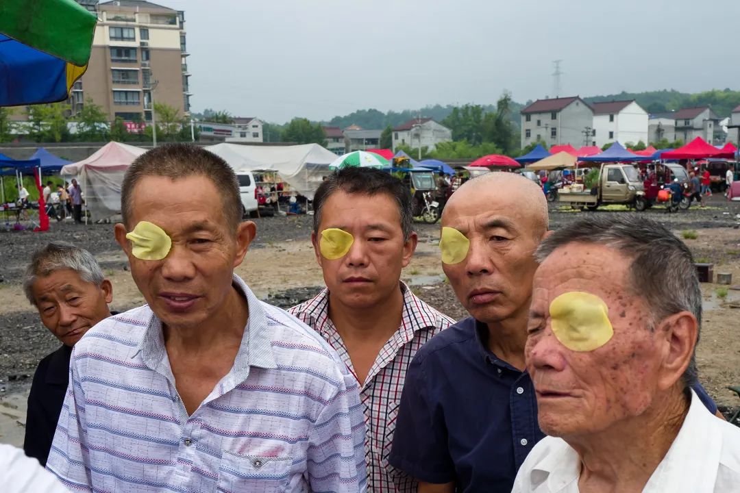 "2018年,浙江丽水,体验贴眼膏的赶集人。