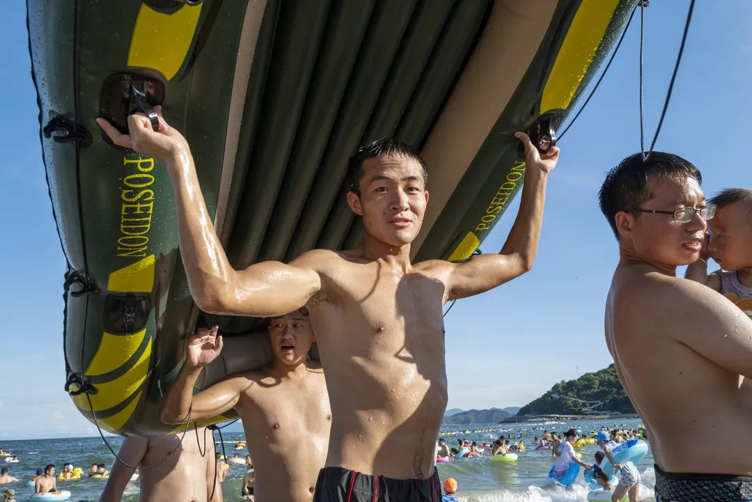 "大力士 2021年9月,大梅沙海滨公园,海上嬉水归来的小伙子们。