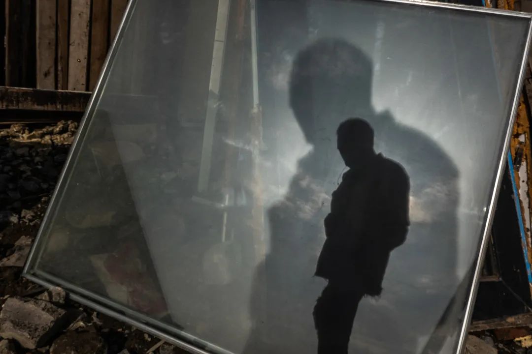 "2021年1月6日,拍摄于个旧建设东村,孩子站在拆迁的房子里发呆。他的父母在隔壁捡拾被丢弃的生活日用品。