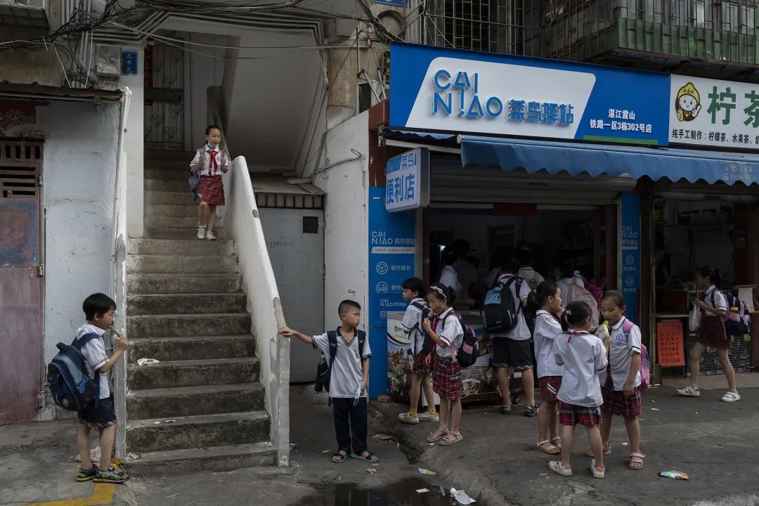 "矿山子弟 云南省个旧市,矿山上私办的一个小学,午休去打饭回来的学生。