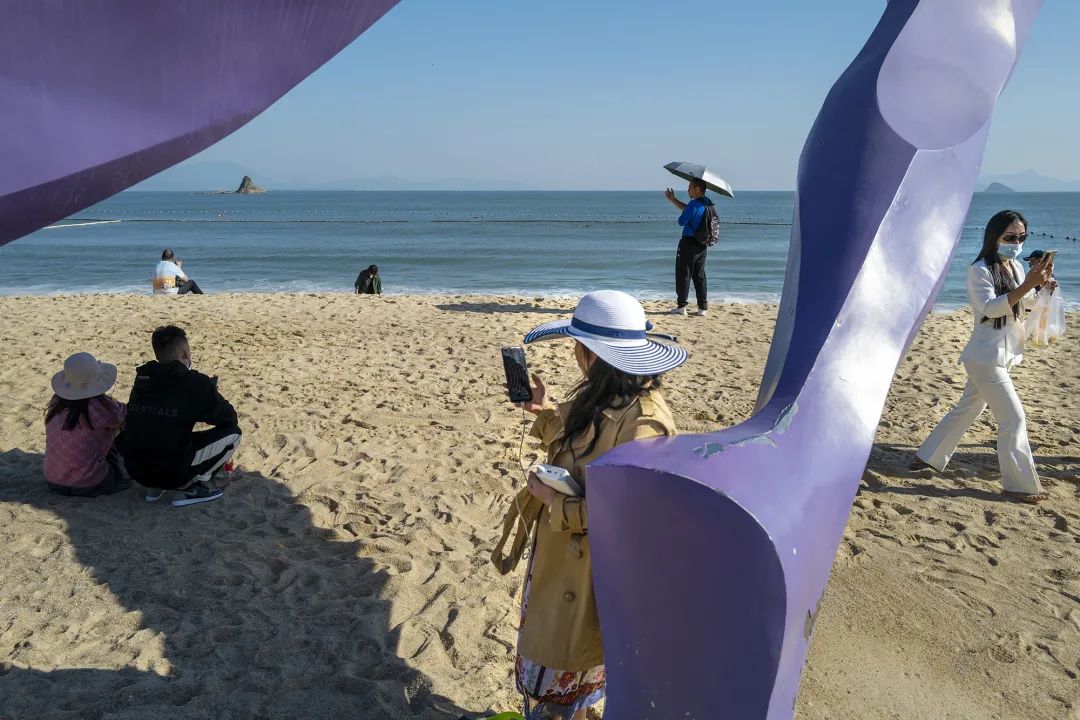 "秋日海滩 2021年11月,大梅沙海滨公园沙滩上休闲的人们。
