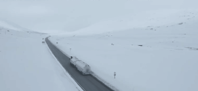 电影一开场,一辆油罐车在暴风雪中行驶。