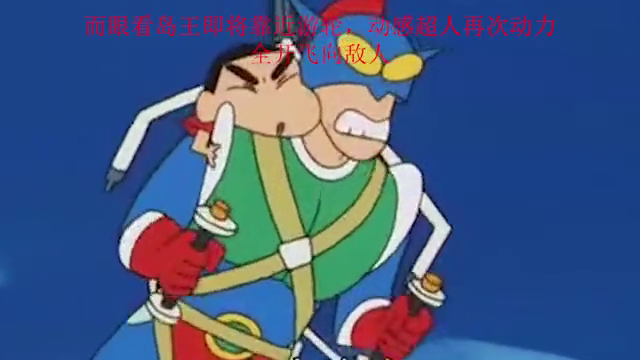 而眼看岛王即将靠近游轮,动感超人再次动力全开飞向敌人。可突然飞行器没了燃料,动感超人拼命想捉住对方的飞行器,但是却差了一点点,关键时刻小新放了一个屁,动感超人才成功捉住机身。