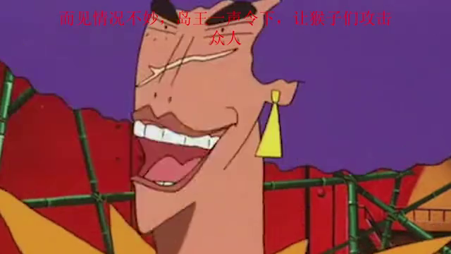 书接上文,两千年蜡笔小新剧场版呼风唤雨的热带雨林下,幸运的是大家都没事,而且被冲到一片香蕉林前。于是小新几人终于饱餐了一顿,不料这是猴子们种的香蕉。于是前来采集的猴子们看到有入侵者一拥而上,很快就将几人团团包围。