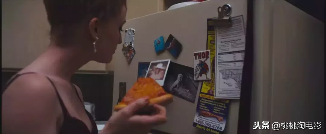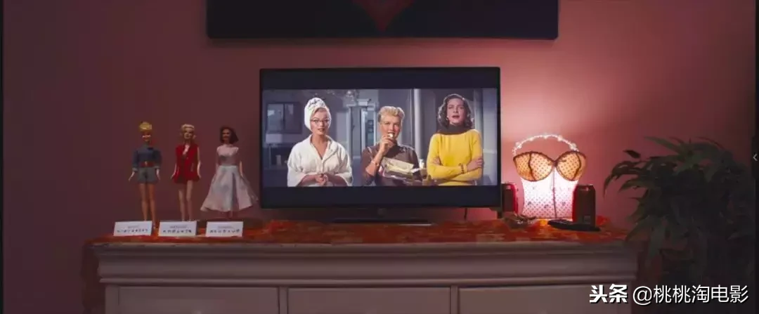 山姆第一次到萨拉家,看的电影是梦露主演的《愿嫁金龟婿》(1953),电视机旁还放有三位主角的芭比娃娃,墙上还贴有一张电影海报,是年轻女性追逐“美国梦”的暗示 - 不受阻碍地追求幸福、金钱和声望 - 没有什么地方比浮华的洛杉矶更适合的了。