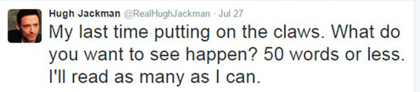 在《金刚狼3》的拍摄期间,hugh jackman曾在他的推特上发布了一张装备了一根金刚“爪子”的照片,并配文:这是最后一次戴上这些“爪子”,证实了《金刚狼3》是hugh jackman最后一次出演金刚狼,也无疑使这部电影未上映时就获得了非常高的关注度。
