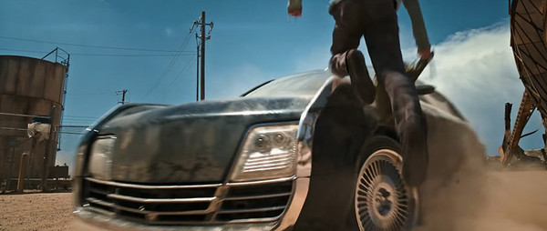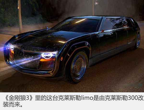 《金刚狼3》将故事发生的时间设定在2029年,进入暮年的金刚狼驾驶一台克莱斯勒limo做uber司机为生。这台克莱斯勒limo,第一眼看去以为是一台加长林肯或者凯迪拉克,而尾部的翅膀车标则揭示了它克莱斯勒的身份。其实这是一台由克莱斯勒300改装而成的道具车,尾部的e8在现实中并没有相应的车型,毕竟剧情设定时间是2029年,出现一款目前市面上不存在的车也算合情合理。