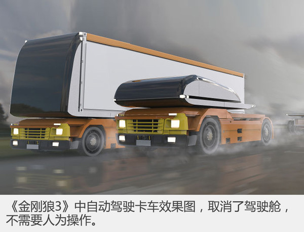 《金刚狼3》里在狼叔逃亡的过程中,可以看到路上行驶的自动驾驶卡车,镜头很短、一闪而过,却是十分耀眼的一幕,让我们尝了未来交通的一把鲜。