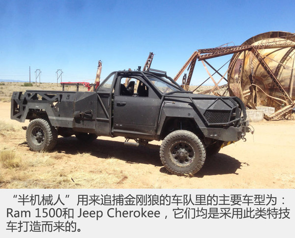 《金刚狼3》里的反派、狼叔的主要对手是“半机械人”带领的一支雇佣兵队伍,他们拥有一个车队追捕金刚狼,车队的头车是一台ram 1500,其他车型则为jeep cherokee。