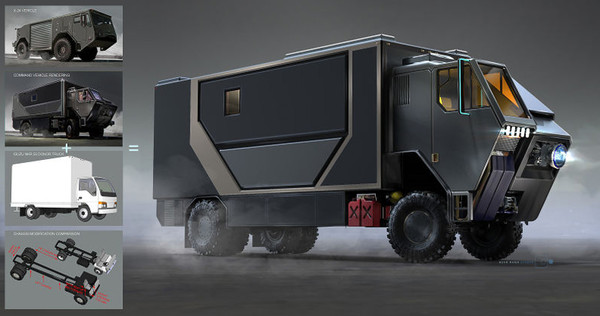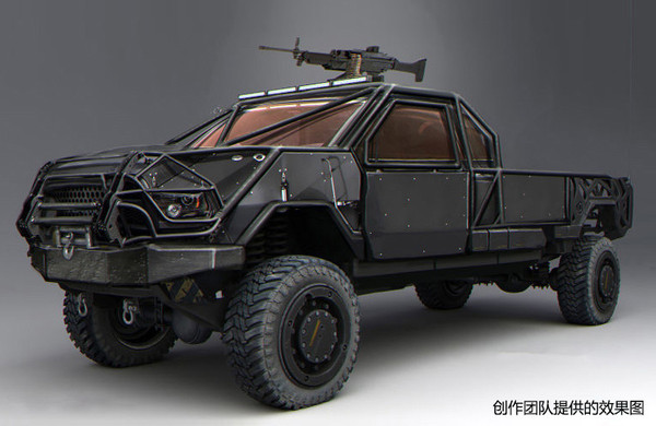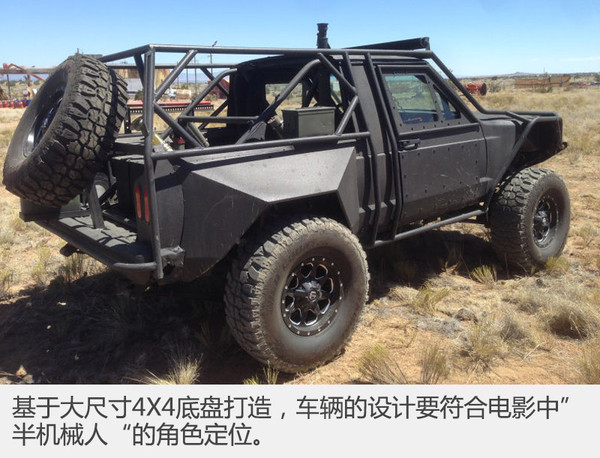 实际上,“半机械人”的车队都是由特技车打造而来的,它们均采用了大尺寸4x4底盘。pugh表示,“半机械人”的车队设计还是不能太过军事化,因为“半机械人”不属于军队,他们只是受雇于一家公司,但是这些车型又要与他们在影片中的身份相映衬。
