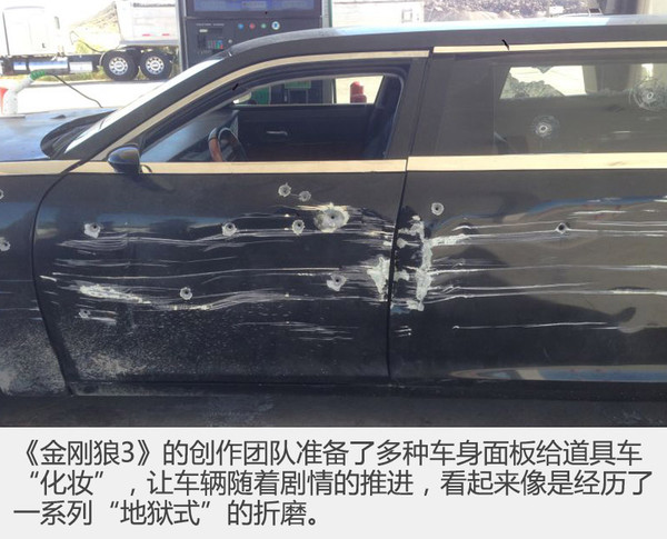 随着剧情的推进,为了使车身有被子弹打中、被弄脏等各种不同的效果,制作人员使用了不同的面板进行拍摄。采用这种方法是因为很多镜头都不是一次就能通过的,这样就避免了道具的损坏。