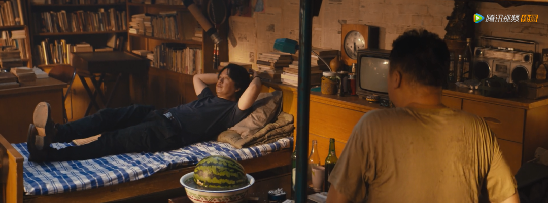 张超提行李箱的吃力、手里被捏扁的易拉罐、在大远景里摔倒的小警察。
