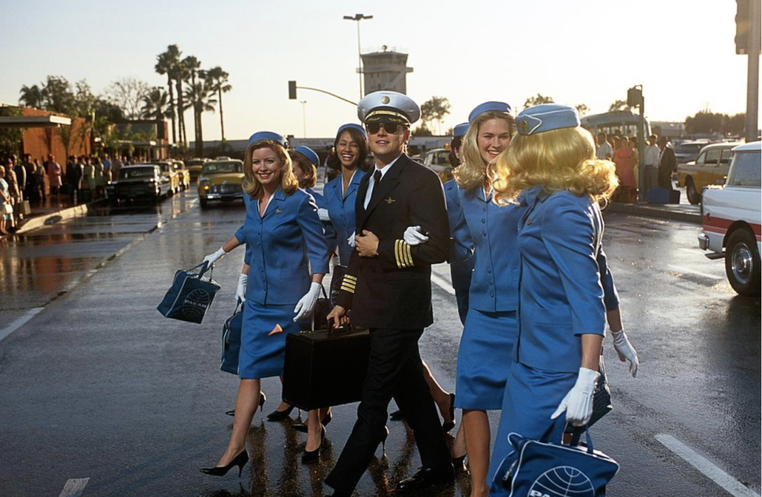 只身来到纽约的弗兰克,通过伪造飞行徽章和骗取飞行服,一跃成为了泛美航空副机长。