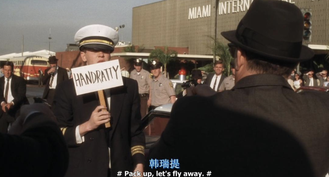 弗兰克再一次拾起泛美航空飞行员的身份,以到学校进行巡回演讲,并招聘八位年轻貌美的空姐为由,光明正大的从一群警察的监视下乘上飞机。