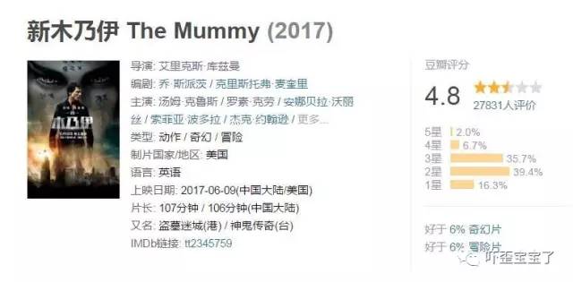 不过编编认为这部电影很好的呈现了木乃伊的形象、恐怖片的惊吓点、动作片的热血刺激、喜剧片的幽默,让人一下紧张、一下大笑,不敢看鬼片的朋友真的可以尝试看看!不会完全可怕~因为里面的死尸、木乃伊都是小怪等级,基本上几拳就可以打暴他~可以欣赏下特殊化妆技巧~