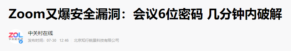 他们所用的视频会议软件zoom,此前频频爆出安全漏洞,在今年宣布退出中国市场。