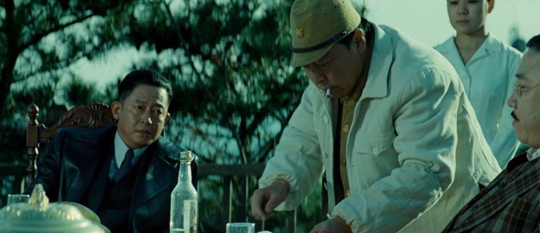 一场戏,敌人监视之下,他收拾好藏有间谍的饭桌,离去。