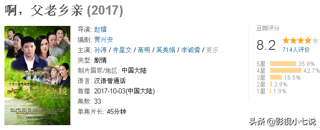 top04:《啊,父老乡亲》,豆瓣评分8.2,33集,优酷视频、搜狐视频、腾讯视频均可观看。