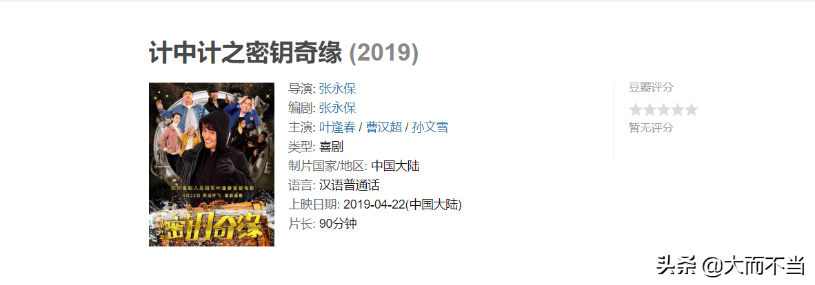 最奇葩的是这部电影上映2年,至今豆瓣不敢开评分,这恐怕是叶逢春给自己留的最后一点脸面吧,毕竟短评区清一色的一星差评。