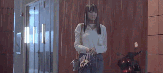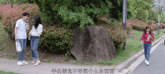 女主看到男主堂姐帮他吹眼睛里的沙子,以为他们在kiss,赶紧躲起来。