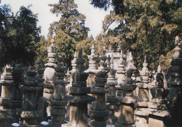 墓塔林,位于千佛殿西南0.5公里,有唐宋至明清各代灵岩寺住持僧墓塔167座。其中唐代1座、北宋6座、金代5座、清代3座,其余为元明遗物。志铭碑81通。这些墓塔和志铭,反映不同时期的雕刻特征,寺宇史实。墓塔的形制多样,造型古朴、雕工精细。一般墓塔均由塔座、塔身、塔刹组成。塔座多呈方形或圆形,雕刻成莲瓣式金刚、力士顶托,多至数层,有的做成须弥座式。塔身一般较高大,有圆形、长方形、钟形等,每个上面皆刻祖师僧之名和年号。塔顶一般呈长方形,雕刻着莲华瓣的复钵和圆形相轮,上置宝瓶或相轮式宝尖。