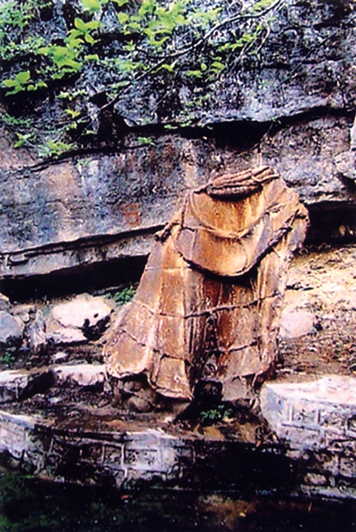 袈裟泉袈裟泉,位于灵岩寺“转轮藏”仙人岩东,庙堂遗址处崖下。亦名“印泉”“独孤泉”,为济南新72名泉之一。泉水激流,长年不竭。人们以泉边立有“铁袈裟”铸铁,便习称为袈裟泉。此泉泉源旺盛,水质甘美,昔日灵岩僧众皆钦用此水。泉源出于涵云洞中,现在洞口被封,泉水自岩壁石隙流出,注入半圆形石砌水池中,然后盘桓曲绕,由石雕龙口中喷泻而出。池周曲廊环绕,水质清流澈,金鲤戏游。池周围林木叠翠,危崖耸立,清爽宜人。铁袈裟立于泉边,两物相映,愈显得古朴深重。
